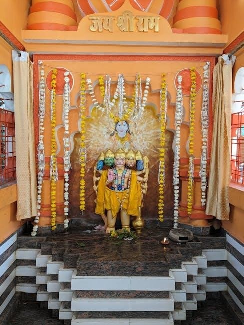 Consistent practice can lead to inner peace, reduced stress, and a heightened sense of optimism. The verses invoke Hanuman’s blessings for success, prosperity, and liberation. Accessing a PDF makes this practice convenient and accessible to all, allowing for daily recitation and reaping its profound rewards.